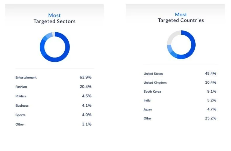 As well as ageing, face and gender swapping, deepfake tech is being used for more nefarious purposes. The deepfake detection company, Sensity.ai shows that the most targeted sectors are Entertainment, fashion and politics mainly in the USA and UK.